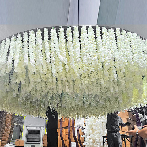 Flores artificiales de boda personalizadas, flores colgantes de glicinia para techo, decoración de salón de banquetes