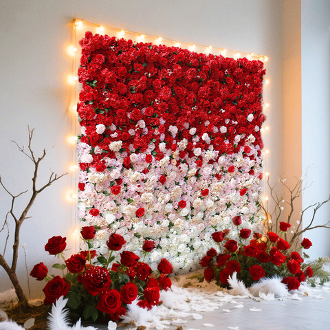 Superventas telón de fondo de boda flores artificiales pared Tropical cortina enrollable tela de seda Pared de flores